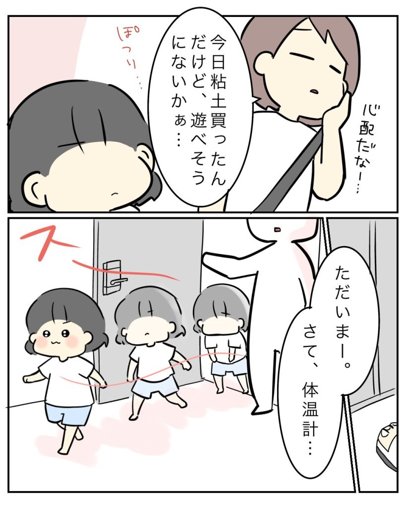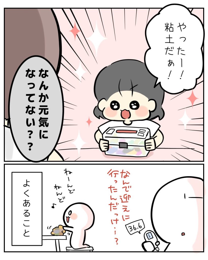早退した次女は粘土でよく遊び、そのあとも熱は上がらず元気でした。