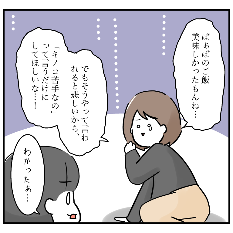ちいがキノコ苦手って知ってたから、料理にキノコは入ってませんでした。