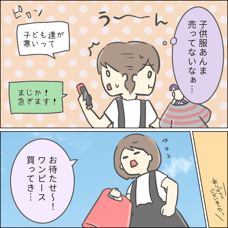 そして、このモールには子供服を取り扱ってる店があまりなくて、探し回ってる間に旦那にも被害が広がってました。