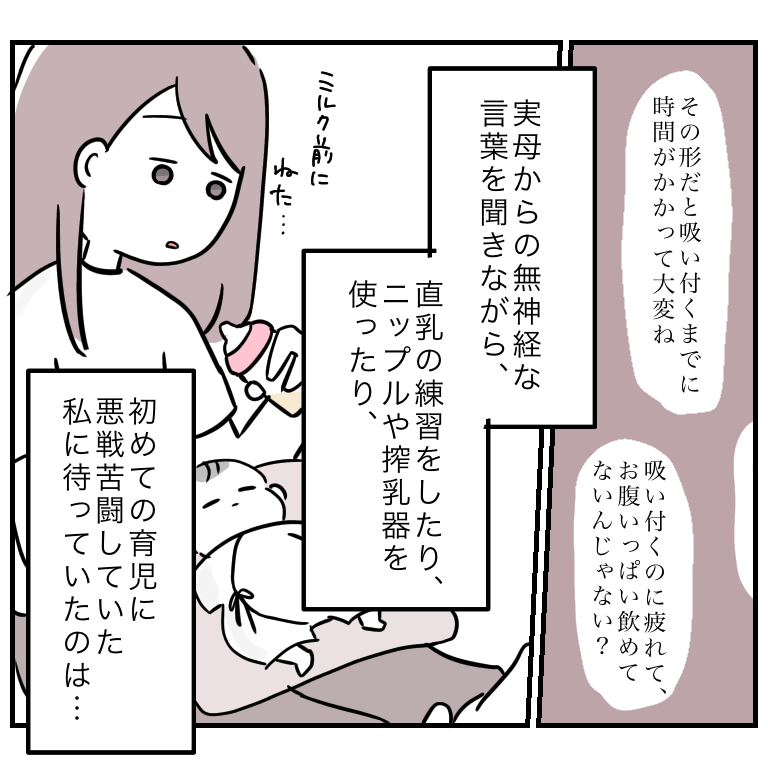 また、出産後は実家に戻っていたので、実母が家事全般&日中の子供のお世話をしてくれてすごくありがたかったんですが、もう…平気で心を抉ってくる…!!
