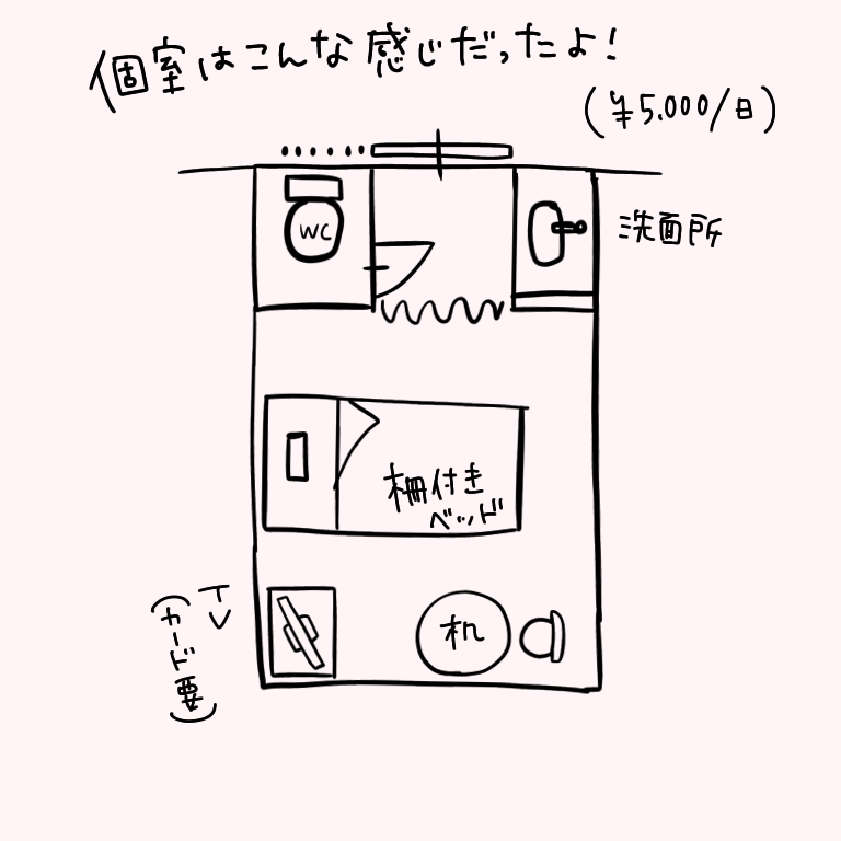 初めての入院がすごくストレスになりそうだったので、有料の個室にしてもらいました。