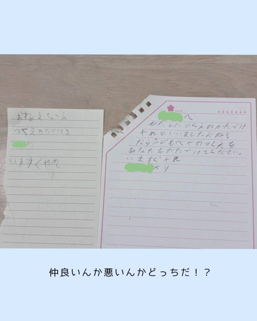 思ってたのとちょっと違う2025.07.03小ネタ姉妹, 子育て, 子育て漫画, 育児, 育児漫画 思ってたのとちょっと違う 「いますぐやれ」にとても力を感じます…!それにしても長女、3年になって走り書きを覚えたのか、少し汚くなってるな…。笑 コメントはこちら 同じカテゴリの記事 ギリギリでもなんでもないぞ 悪口なのにほっこりした 9歳と7歳の合言葉チョイス これだけは言っておく! ぐんぐん伸びてくわ それこぼすと嫌だなぁ… 顔認証には勝ったけど… 聞いてた話と違うぞ? 効果はバツグンだ! こんなに儚いっけ? 年始からやらかす人 言い逃げしていくんじゃない 小1が一生懸命考えた策です お前、◯◯だったんか… そういう事にしておいた 中途半端に風呂準備すな 大人になりたくない理由 当たっていたのは… 中間はないのかい? つけられたらすごく嫌なもの 遠くに飛ばしたはずなのに 今その場面じゃないの 小3女子の納得セレクト 夏休みランチ事情 夏休みだけどエアコンが壊れた! 大体これでゴリ押しする 小3恥じらいの妹経由作戦 冗談の代償が重すぎる はじめてのおつかい 生産者の顔してる 無慈悲なちいちゃん 可愛いと言ってほしい 思ってたのとちょっと違う トイレが無い時ほどこうなる パパはお呼びじゃないの 忙しすぎる朝の女子たち しりからフレグランス 最近じゃないの?? ママ立ち入り禁止 何度か諦めかけた 君が言い出したのよ 信用がないようだ エモさが勝るよね お母さんの言う通り 2024年まとめ 気を使うウサギ よく見てるわ 姉にそっくりだわ もれなく起こされる 伸び代あったわ ママのここが好き 我が家のパンツ名 やる気がありすぎる なんか静かだと思ったら 受け止める勇気がない ママにはよくわかんない 次女は学習した! お空にいた時の話 ただ切っただけなのよ… もう5歳なんだから これ絶対に縮んでるよね おしゃれには程遠い なんて過酷なゲーム 姉であって○○ではない 楽になる日を信じてる さては決まってるな? 着替えてない時に限って 雷の音と次女5歳 こんなとこまで似てる すごい勢いでやってきた ラップの芯とかレアアイテム 絵面は悪いけど全力で洗ったよ 5歳から考える婚活 母が溶ける前に返して ときめきを想像してたら 動きたくないとか関係ない 来てくれると思ってた いつの間にか3姉妹のパパ 30秒で後悔した あなたがいないとねむれない 女の子あるある 女の子ないない トイレに行ったその後に 冬定番の罠 4歳のクイズ その3択? 次女、人間じゃない説 1ページ漫画まとめ 母のライフはゼロよ…! 時よ止まれと願わずにはいられない 柔らかいんじゃなくて とうたんの正体 かわいいお手伝い お持ち帰り不要です パン作りとおしり 前の記事 フォローは1年生のお任せ 2025.07.01次の記事 可愛いと言ってほしい 2025.07.04アプリなら通知ですぐ読める! NAPBIZブログ