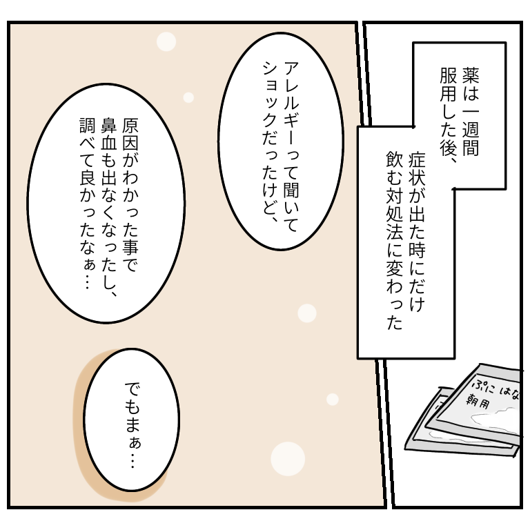 これからも出来るだけアレルゲンを避けつつ、アレルギーと付き合っていきたいと思います。