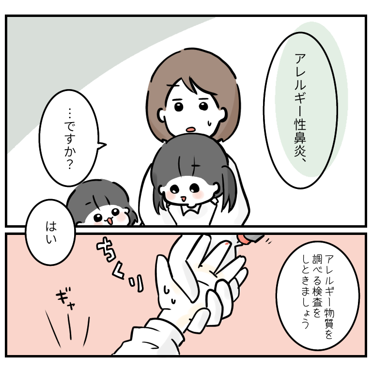 そして長女の指先に小さな針をさして採血をして、アレルゲン検査。