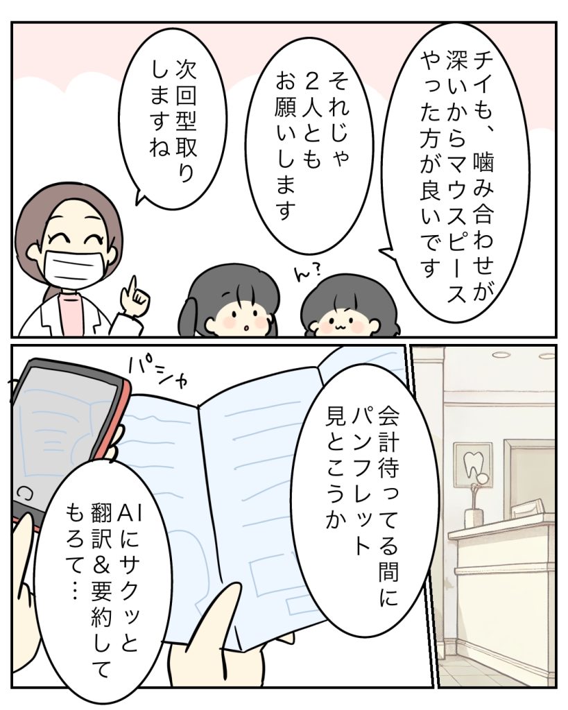 この時は子供の歯のクリーニングに来てただけで、プレ矯正は完全にノーチェックだったから