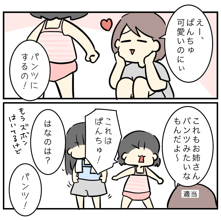 我が家のパンツ名2024.08.06小ネタ子育て, 子育て漫画, 育児, 育児漫画 我が家のパンツ名 あのお尻が丸っこくなる、もこもこカボチャみたいなぱんちゅが好きなんだ…!長女はもうフォルムすっきりなパンツだから、次女にはまだぱんちゅでいてほしいな。 コメントはこちら 同じカテゴリの記事 ギリギリでもなんでもないぞ 悪口なのにほっこりした 9歳と7歳の合言葉チョイス これだけは言っておく! ぐんぐん伸びてくわ それこぼすと嫌だなぁ… 顔認証には勝ったけど… 聞いてた話と違うぞ? 効果はバツグンだ! こんなに儚いっけ? 年始からやらかす人 言い逃げしていくんじゃない 小1が一生懸命考えた策です お前、◯◯だったんか… そういう事にしておいた 中途半端に風呂準備すな 大人になりたくない理由 当たっていたのは… 中間はないのかい? つけられたらすごく嫌なもの 遠くに飛ばしたはずなのに 今その場面じゃないの 小3女子の納得セレクト 夏休みランチ事情 夏休みだけどエアコンが壊れた! 大体これでゴリ押しする 小3恥じらいの妹経由作戦 冗談の代償が重すぎる はじめてのおつかい 生産者の顔してる 無慈悲なちいちゃん 可愛いと言ってほしい 思ってたのとちょっと違う トイレが無い時ほどこうなる パパはお呼びじゃないの 忙しすぎる朝の女子たち しりからフレグランス 最近じゃないの?? ママ立ち入り禁止 何度か諦めかけた 君が言い出したのよ 信用がないようだ エモさが勝るよね お母さんの言う通り 2024年まとめ 気を使うウサギ よく見てるわ 姉にそっくりだわ もれなく起こされる 伸び代あったわ ママのここが好き 我が家のパンツ名 やる気がありすぎる なんか静かだと思ったら 受け止める勇気がない ママにはよくわかんない 次女は学習した! お空にいた時の話 ただ切っただけなのよ… もう5歳なんだから これ絶対に縮んでるよね おしゃれには程遠い なんて過酷なゲーム 姉であって○○ではない 楽になる日を信じてる さては決まってるな? 着替えてない時に限って 雷の音と次女5歳 こんなとこまで似てる すごい勢いでやってきた ラップの芯とかレアアイテム 絵面は悪いけど全力で洗ったよ 5歳から考える婚活 母が溶ける前に返して ときめきを想像してたら 動きたくないとか関係ない 来てくれると思ってた いつの間にか3姉妹のパパ 30秒で後悔した あなたがいないとねむれない 女の子あるある 女の子ないない トイレに行ったその後に 冬定番の罠 4歳のクイズ その3択? 次女、人間じゃない説 1ページ漫画まとめ 母のライフはゼロよ…! 時よ止まれと願わずにはいられない 柔らかいんじゃなくて とうたんの正体 かわいいお手伝い お持ち帰り不要です パン作りとおしり 前の記事 掛け声の方が長いわ 2024.08.05次の記事 1年ごとに幼稚園が変わりましたが② 2024.08.07アプリなら通知ですぐ読める! NAPBIZブログ