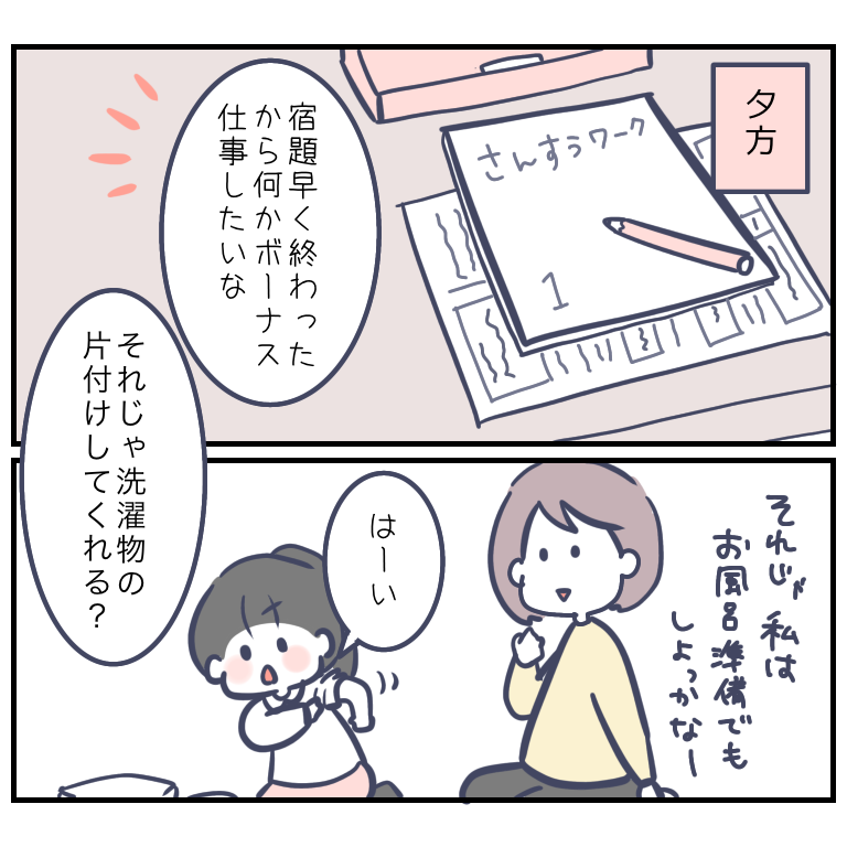 逆に私から「今日お風呂洗ってくれる?」って依頼することもあります。