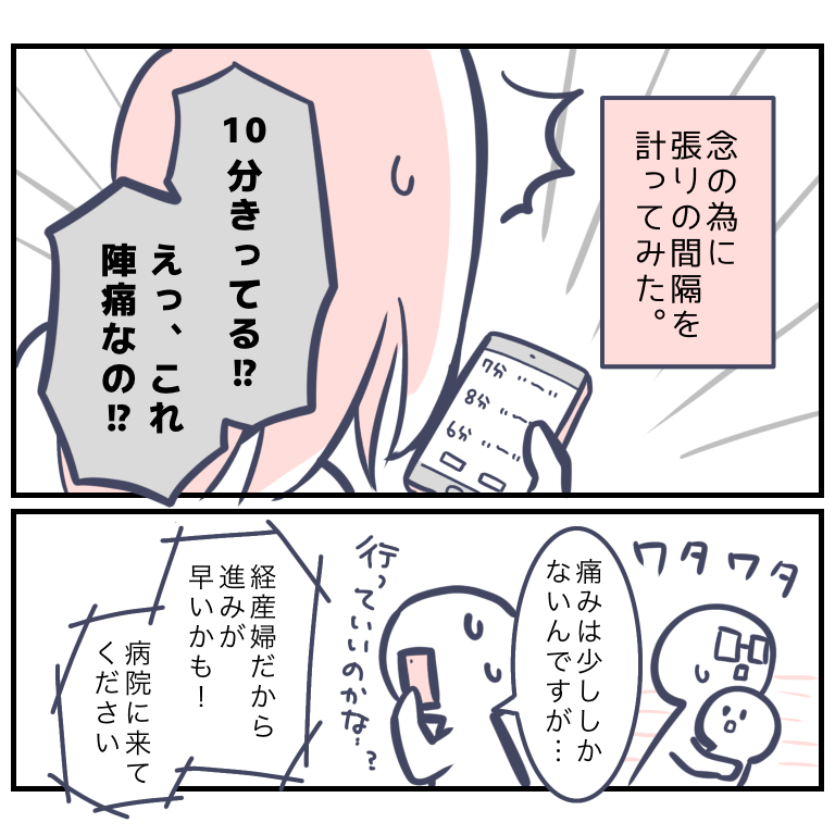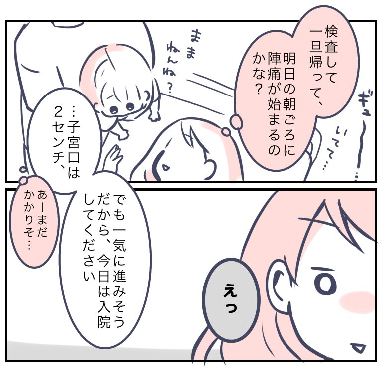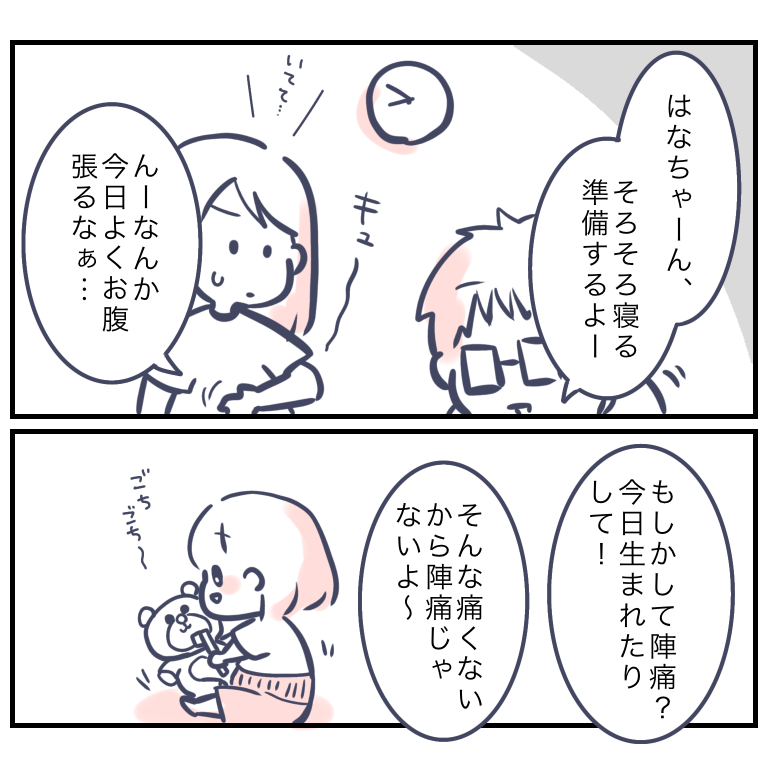 1人目の時は夜中に酷い陣痛がきて、産むまでに夜中に一回病院行ったけど、