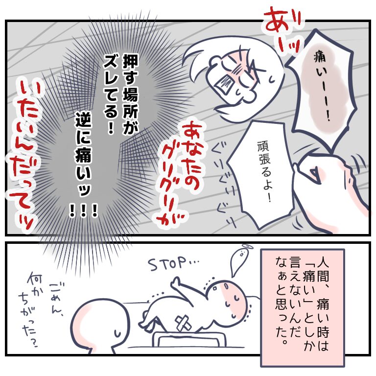 本気で痛い時って「痛い」以外言う余裕がないんだなぁ…。