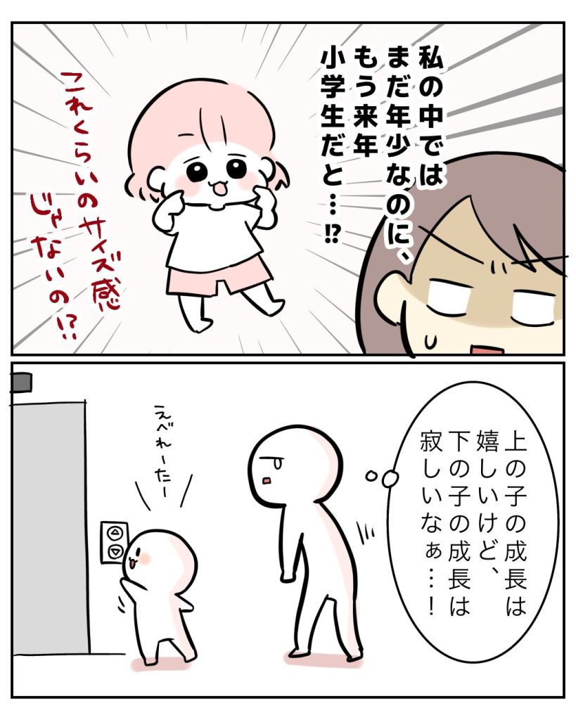 上の子の時は「わー大きくなったなぁ、うふふ」って感じだったのに、