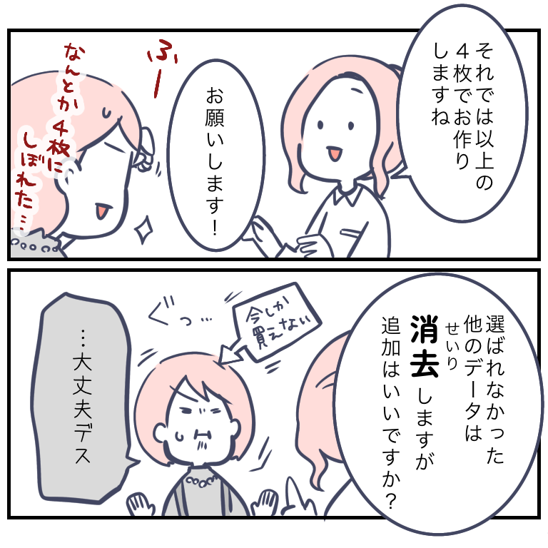 アルバムのみで良い、データも欲しい、フォトフレームが欲しい、など