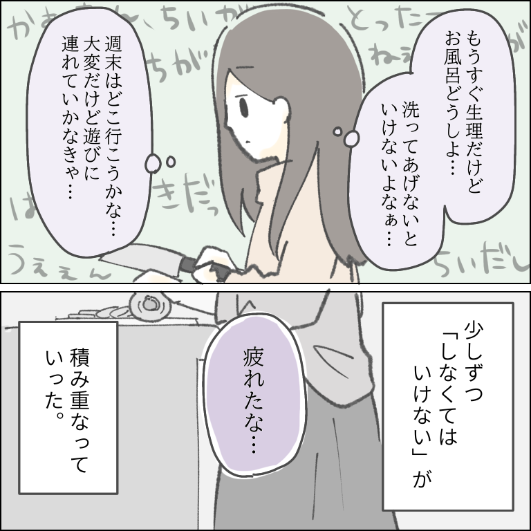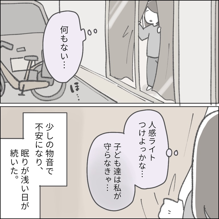 「変な人が来たら子ども達を隠して、私が応戦しなきゃ…武器は何が良いかな…」