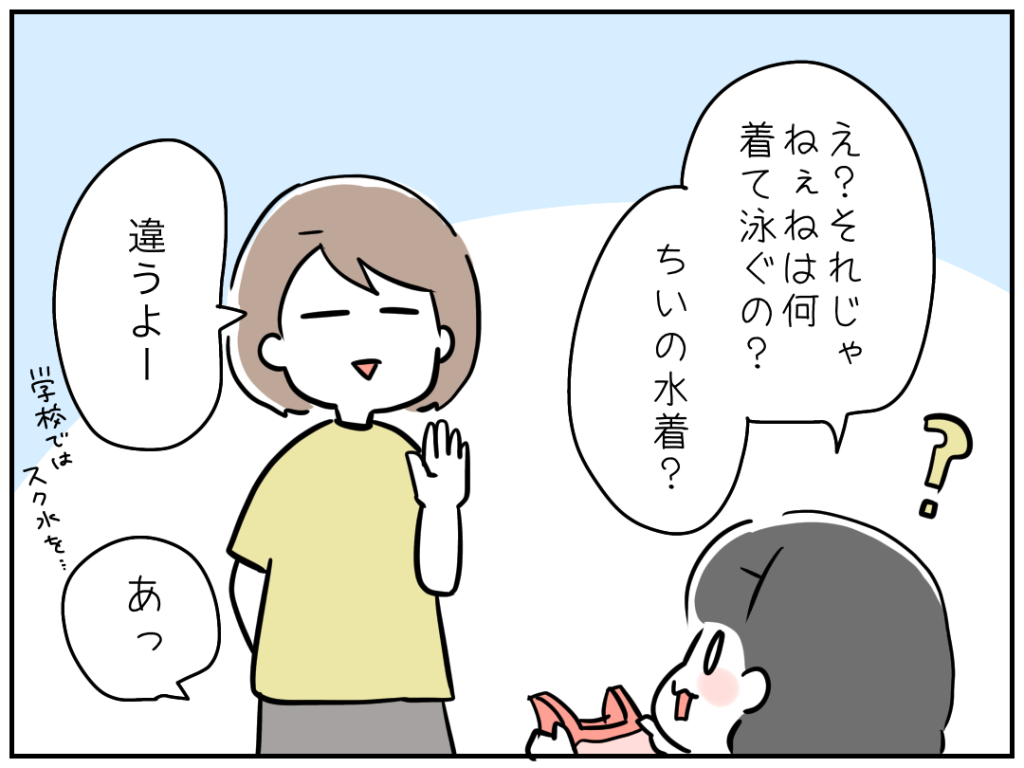 そして旦那に「幼稚園の頃にビニールプールとかの水遊びで水着着てた?」って聞いたら