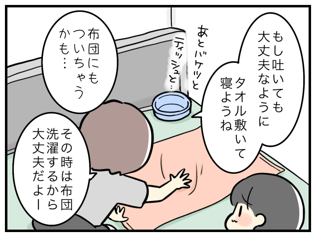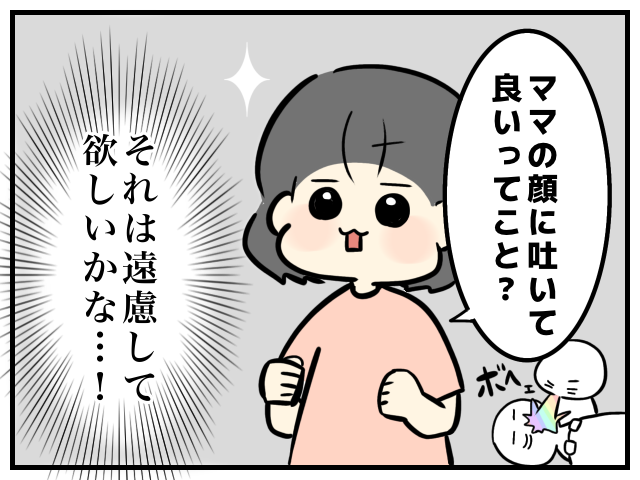 ママの顔狙う元気あるなら、枕元に置いたバケツにお願いしたいな…!